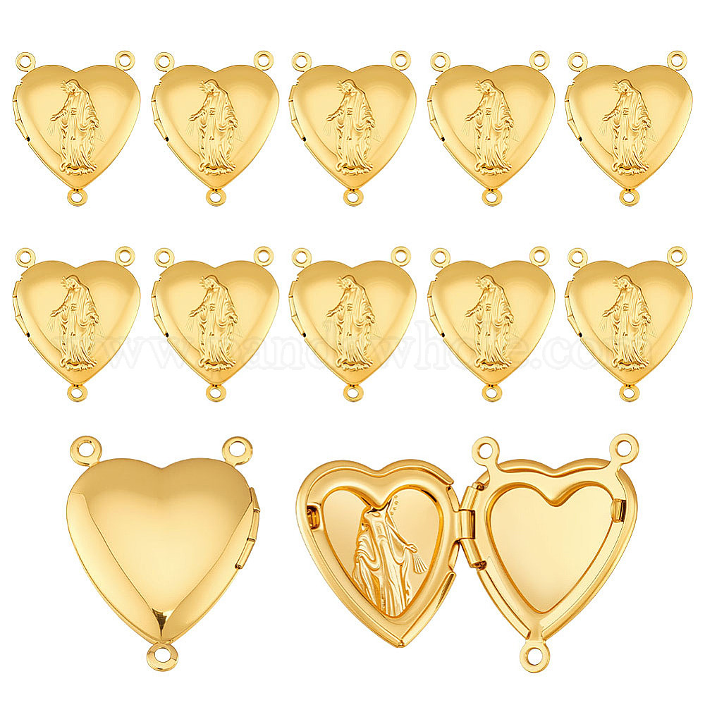 12 шт. латунные подвески-медальоны в форме сердца, долговечный, без кадмия и без свинца, стойки покрытие