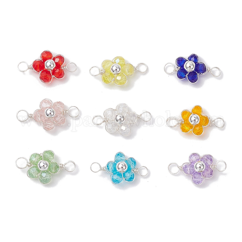 9шт. медная проволока, обернутая стеклянными и латунными бусинами, подвески-соединители, , серебряные (0336WD)