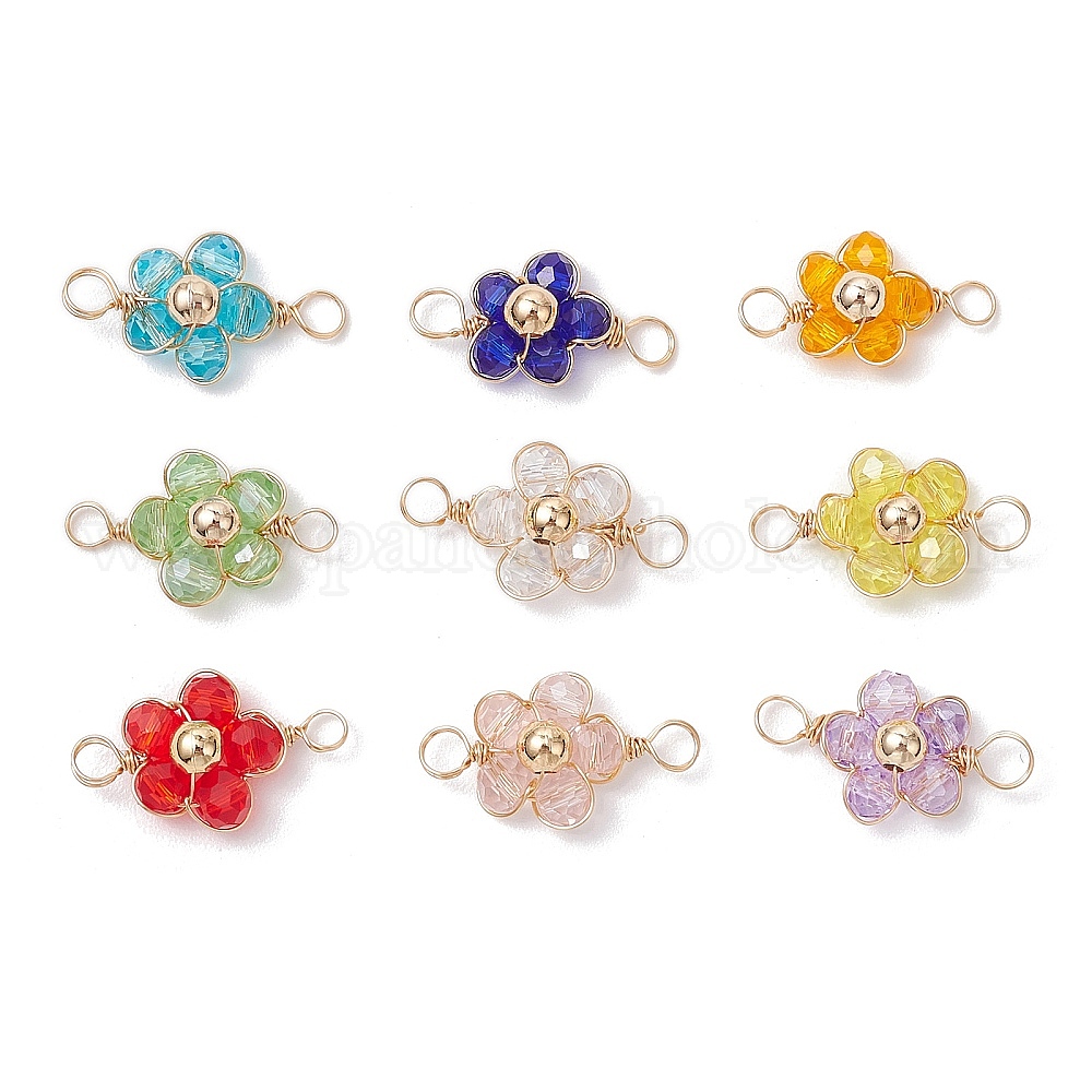 9шт. медная проволока, обернутая стеклянными и латунными бусинами, подвески-соединители, , золотые