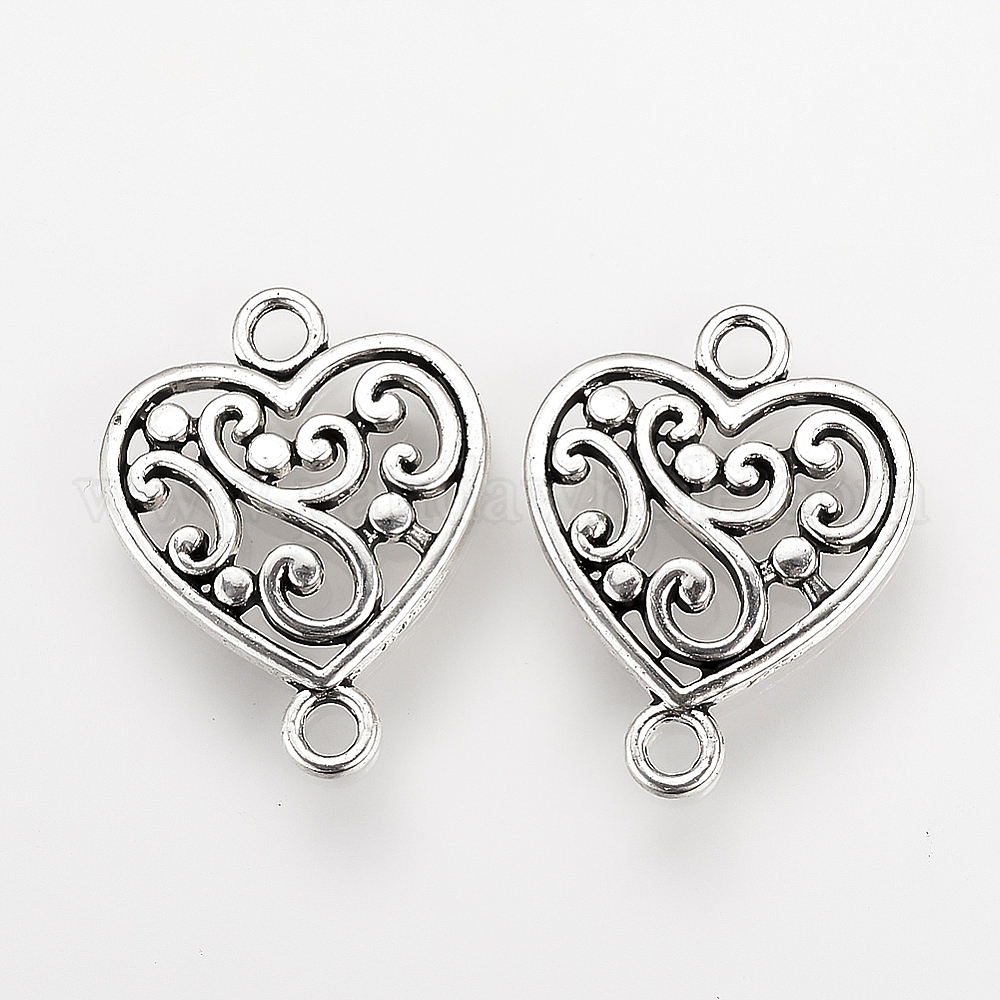 Звенья / разъемы из сплава в тибетском стиле, сердце, без кадмия и без свинца