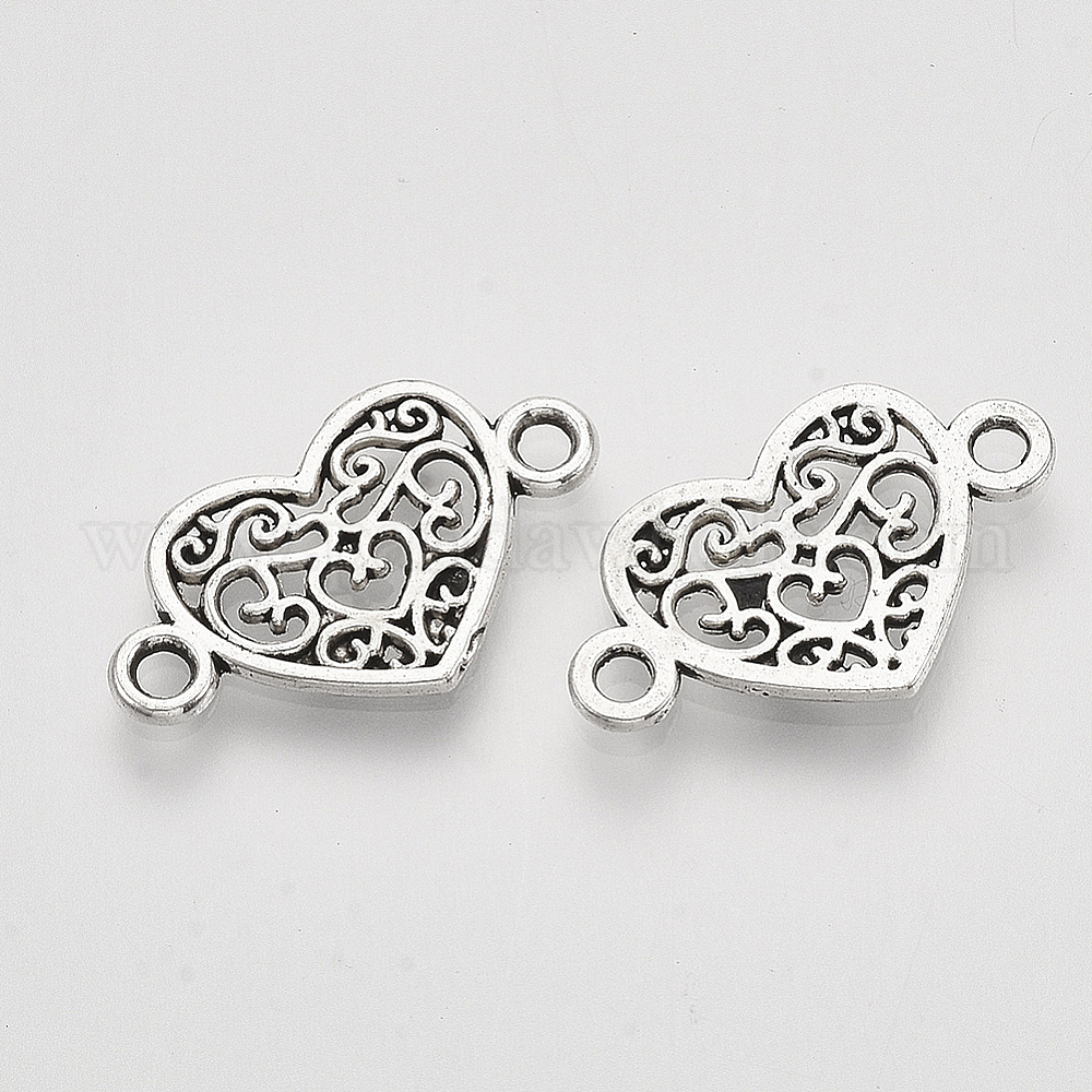 Звенья / разъемы из сплава в тибетском стиле, сердце, без кадмия и без свинца