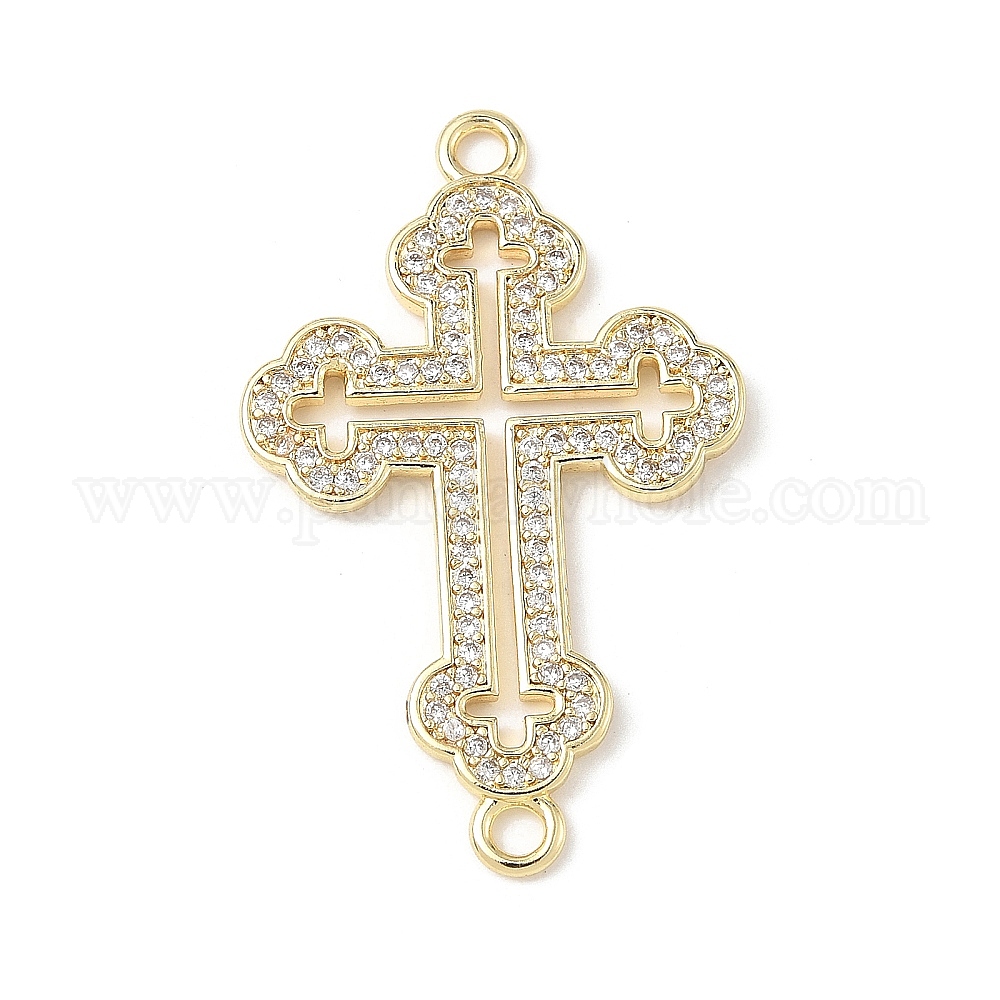 Подвески-крестики с полым латунным микро-паве из прозрачного кубического циркония, стойки покрытие, долговечный, без кадмия и без свинца