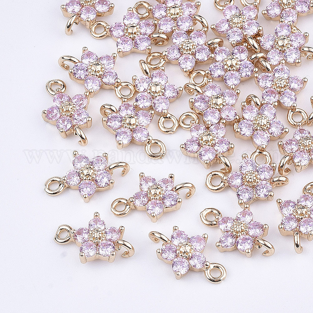 Прозрачные стеклянные линки / разъемы, с латунной фурнитурой , граненые, цветок, золотой свет