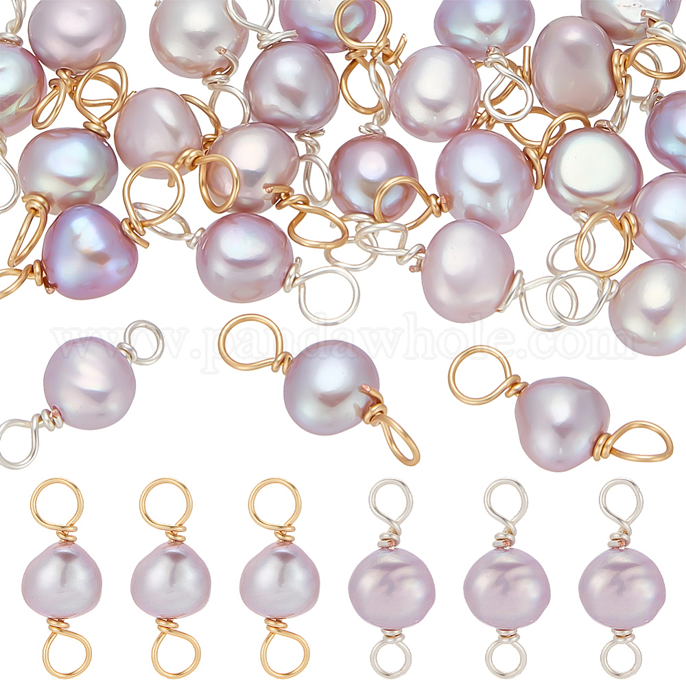 24 шт. 2 цвета натуральный культивированный пресноводный жемчуг двухсторонние полированные подвески, с двойной петлей из медной проволоки, чертополох