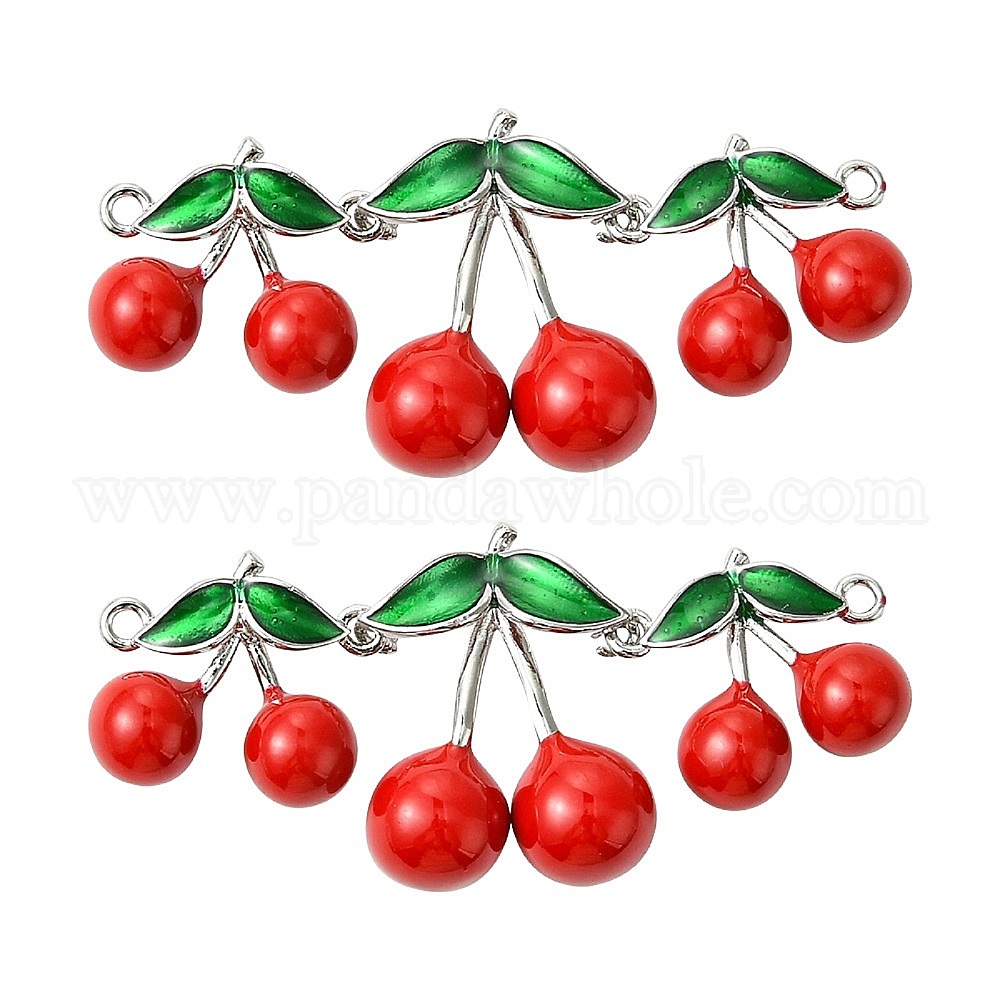 2 шт. латунные подвески-соединители вишневого цвета с красной и зеленой эмалью