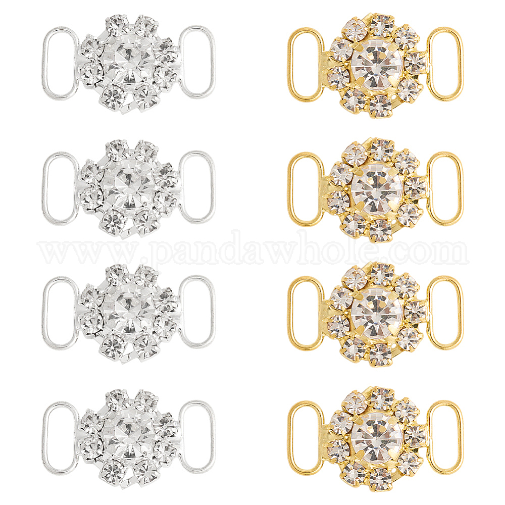 • Золотой & Серебряный 8 шт. 2 цвета латунные подвески-подвески со стразами, Декоративное украшение в виде цветочных звеньев для бикини, золотой и серебряный, 28x16x6 мм, внутренний диаметр: 4x10 мм, 4 шт / цвет