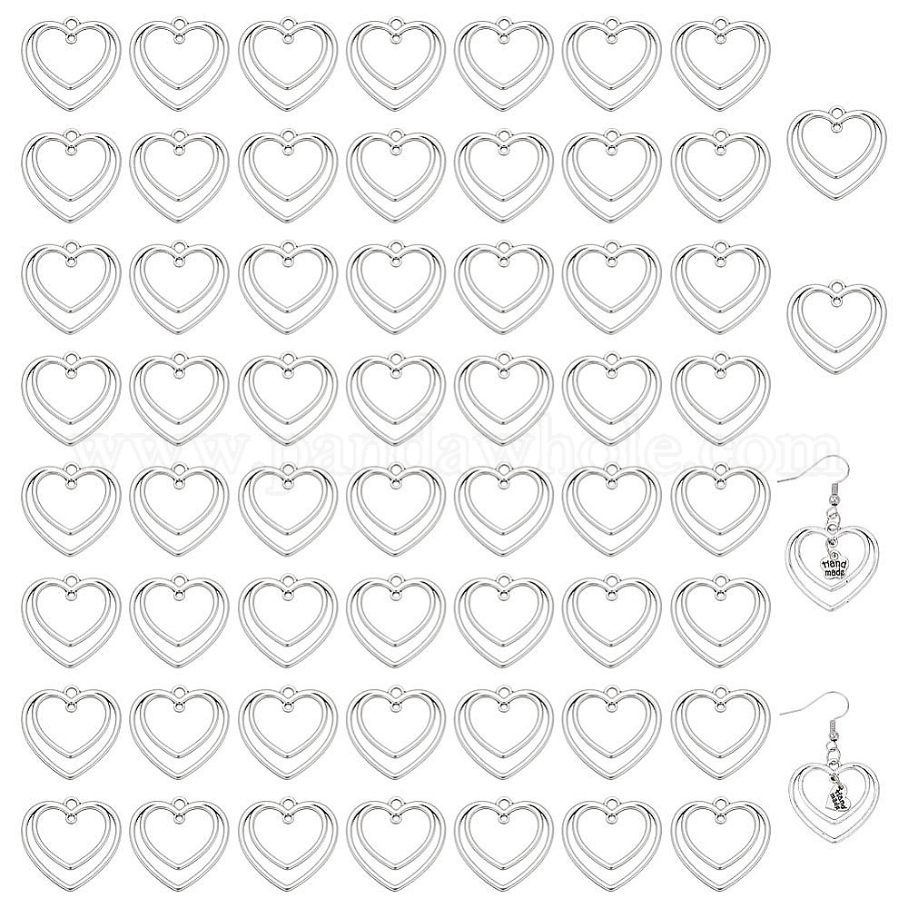 • Античное Серебро 60 шт. сплав в тибетском стиле 2 подвески-соединители в форме сердца с петлями, античное серебро, 25x25x1.5 мм, отверстия : 2 mm и 1.5 мм