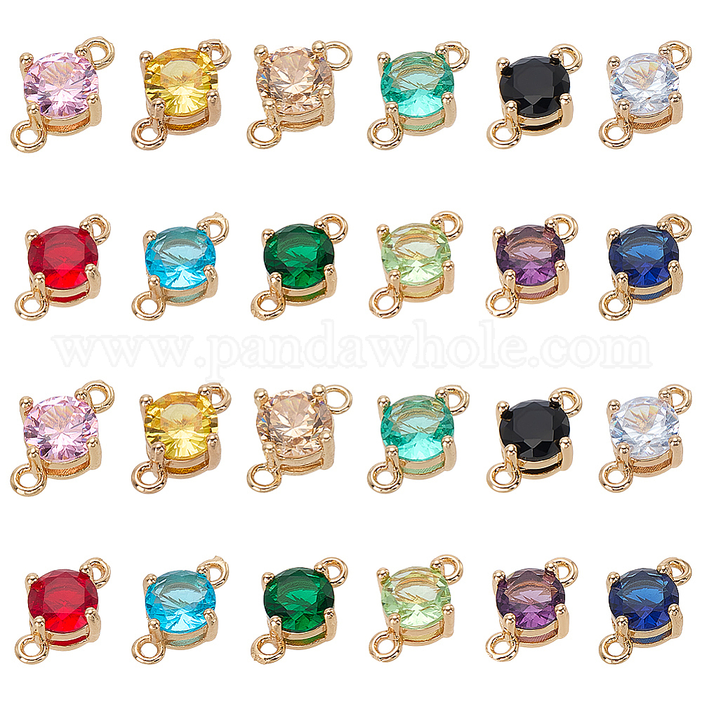 24 шт. 12 подвески-соединители из латуни с паве из кубического циркония, плоские круглые ссылки, золотые