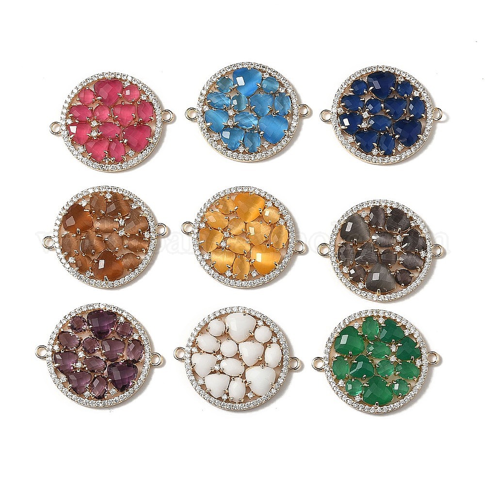 Латунные микро-паве прозрачные кубические цирконии и стеклянные плоские круглые подвески-соединители, реальный 18 k позолоченный, стойки покрытие, долговечный, без кадмия и без свинца