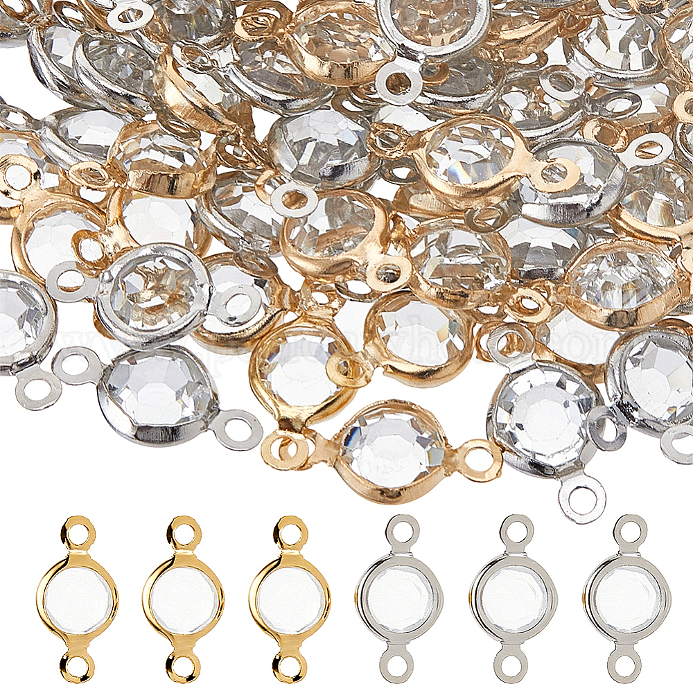 160 шт. 2 цвета латунные подвески-подвески со стразами, плоские круглые ссылки