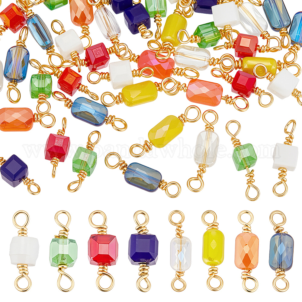 48шт. 8 стили стеклянных граненых кубических соединителей-шармов, с петлями из латунной проволоки, реальный 18 k позолоченный