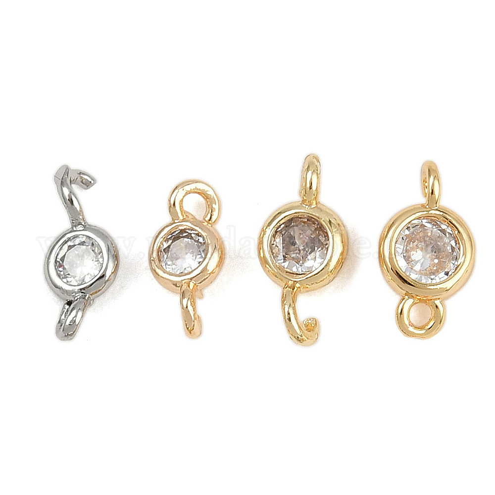 Латунные подвески из прозрачного кубического циркония, плоские круглые ссылки