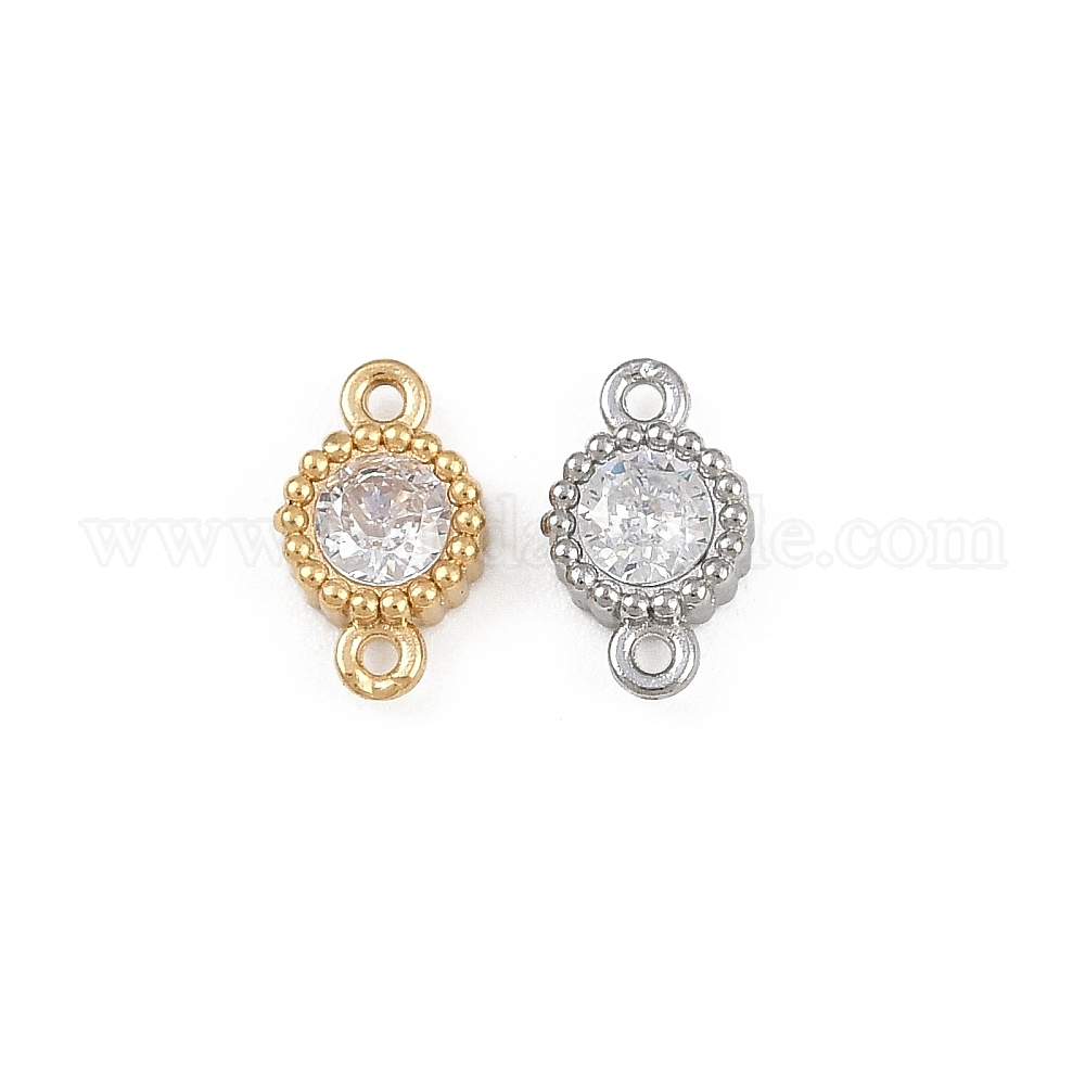 304 подвески-подвески из нержавеющей стали с плоскими круглыми звеньями и прозрачным кубическим цирконием