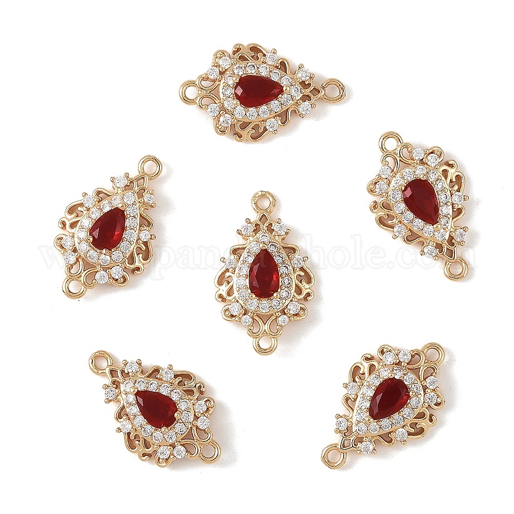 • Красный 3 шт. латунные соединители из кубического циркония с микропаве, долговечный, слеза, золотой свет, красные, 20x12x5 мм, отверстие : 1.4 мм