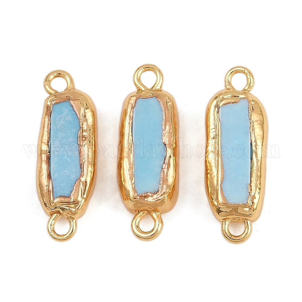 Подвески-соединители из натурального гальванизированного окрашенного хаулита, с латунной фурнитурой , прямоугольные, голубой