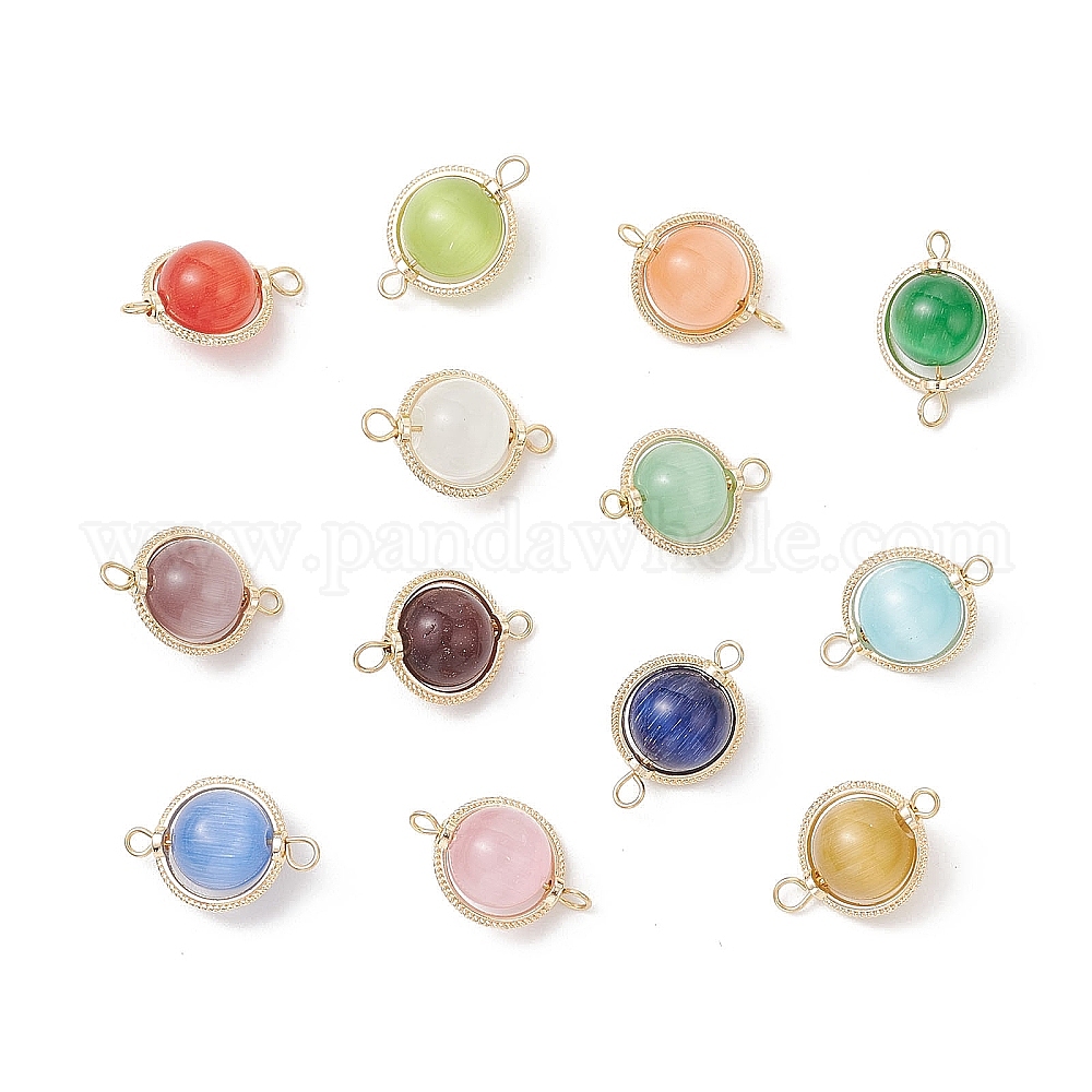 • (52) Непрозрачная лаванда Латунные круглые подвески-соединители «кошачий глаз», золотые, разноцветные, 20x13x10 мм, Отверстие : 1.8 мм & 2 мм