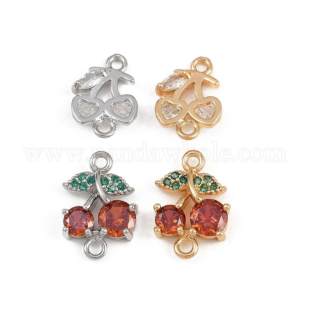 Подвески-фигурки с фруктами из латуни с паве из кубического циркония, вишневые ссылки