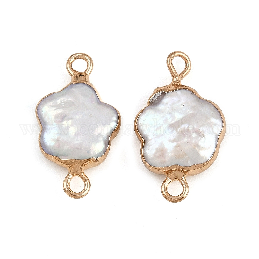 Подвески-цветы из натурального жемчуга Кеши, с латунной фурнитурой , белые