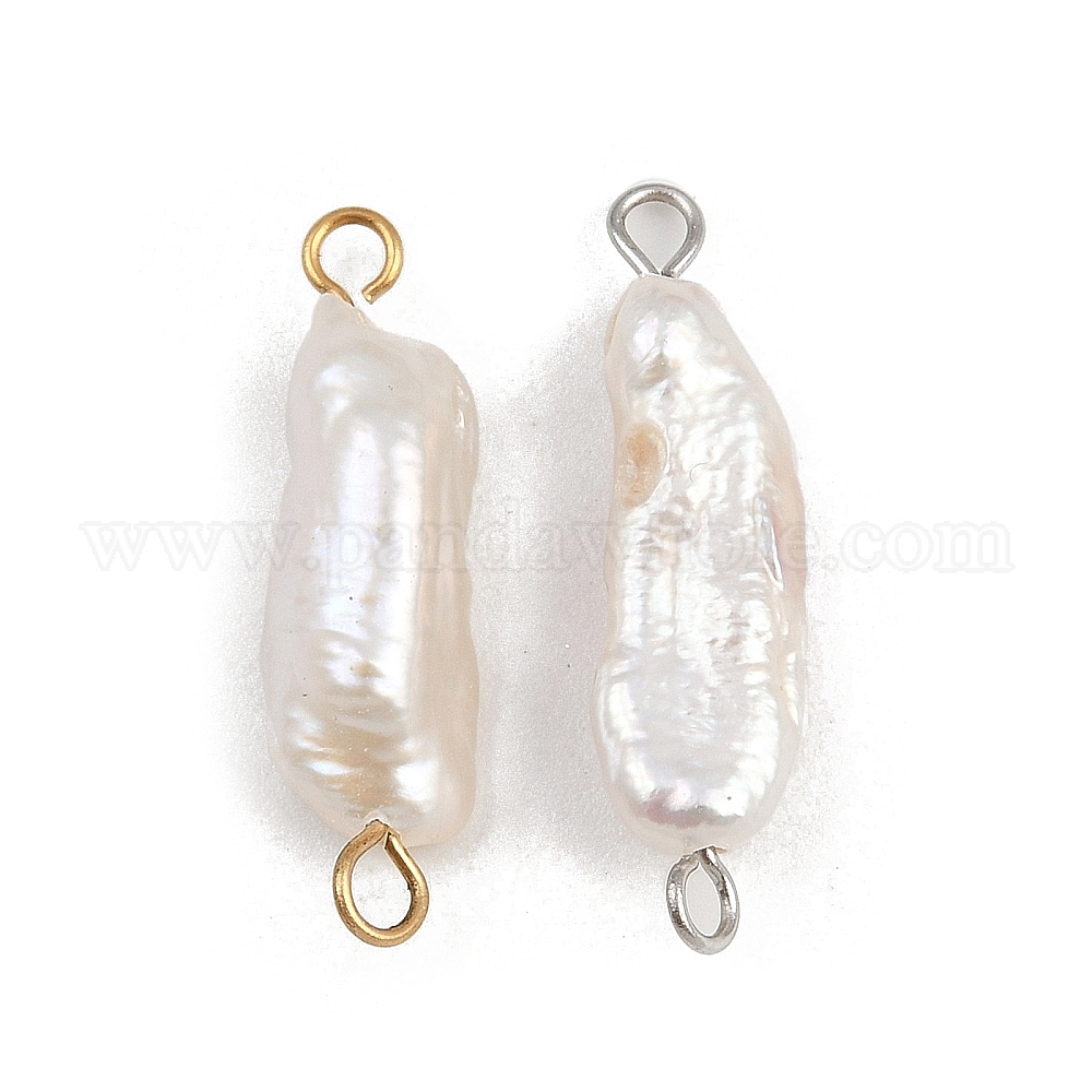 Подвески-коннекторы из натурального пресноводного жемчуга Кеши, с 304 двойными петлями из нержавеющей стали, белые