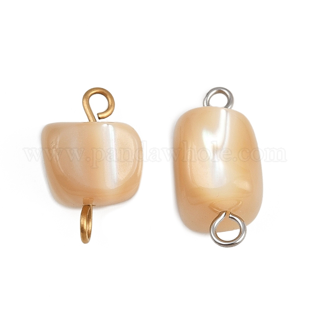 Подвески-соединители из натуральных ракушек, с 304 двойными петлями из нержавеющей стали, песчаный коричневый, ионное покрытие (ip)