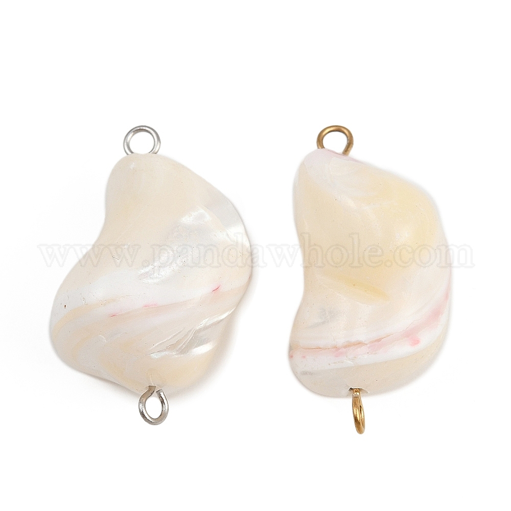 Подвески-соединители из натуральных ракушек, с 304 двойными петлями из нержавеющей стали, цвет морской раковины, ионное покрытие (ip)
