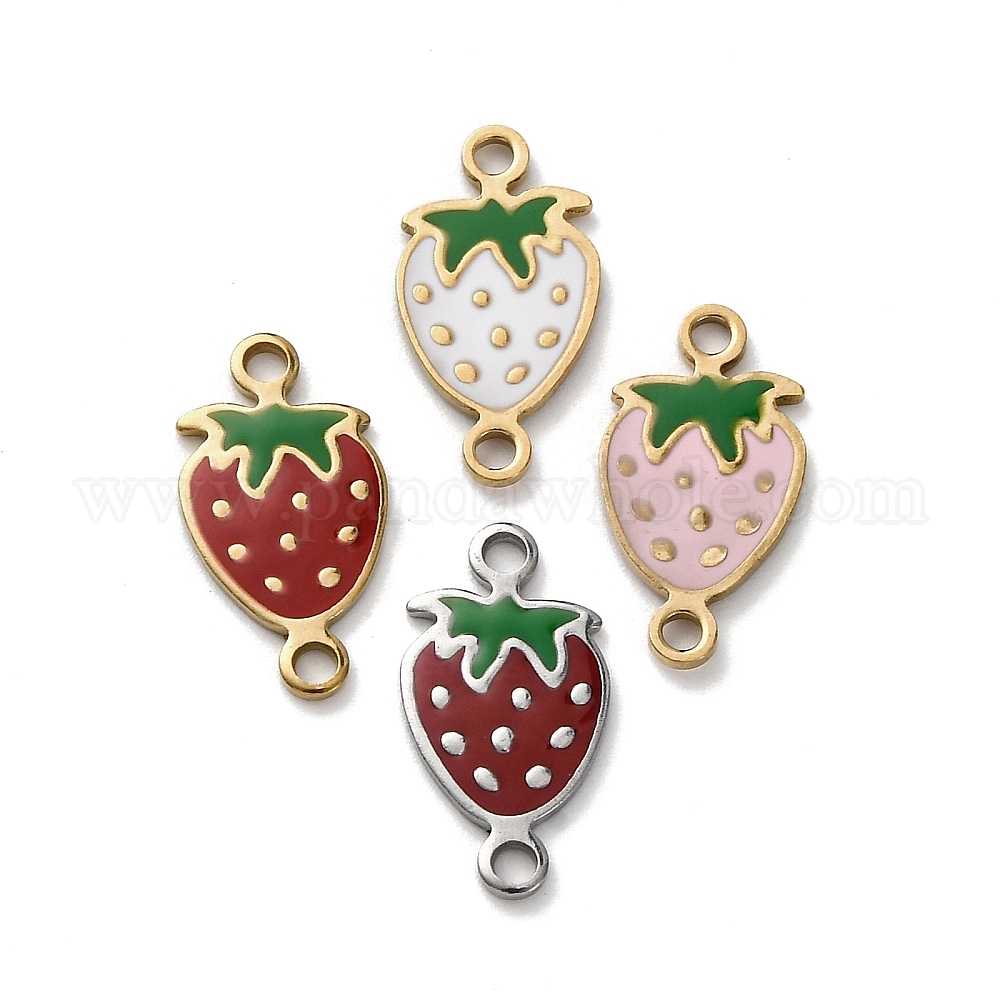 304 подвески-соединители в форме клубники из нержавеющей стали с эмалированным покрытием, золотые, ионное покрытие (ip)