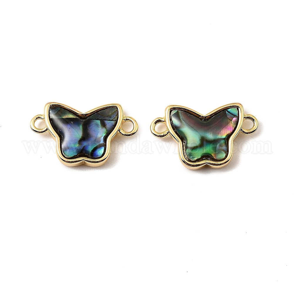 • Настоящее золото 18K Подвески-бабочки из натуральной ракушки пауа, с латунной, реальный 18 k позолоченный, 9.5x16x3.5 мм, отверстие : 1.4 мм