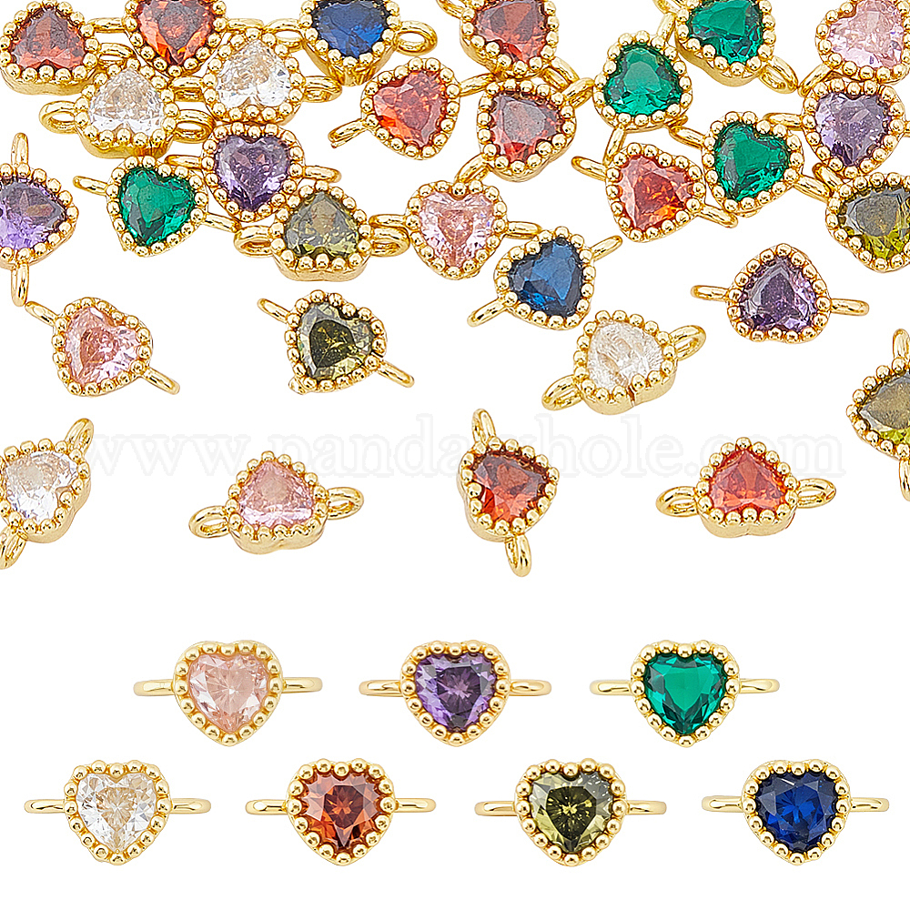 30шт. 8 цветов стеклянные стразы соединительные подвески, латунь сердце ссылки, золотые