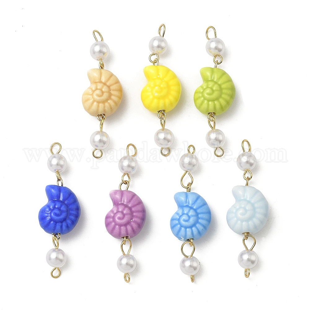 Подвески-соединители в форме фарфоровой ракушки и белого круглого АБС-пластика с имитацией жемчуга, с 304 двойными петлями из нержавеющей стали, золотые