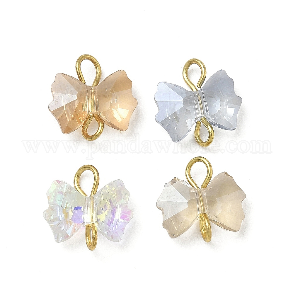 4 шт. 4 цвета гальванизированные стеклянные подвески-бантики, с 304 двойными петлями из нержавеющей стали, разноцветные