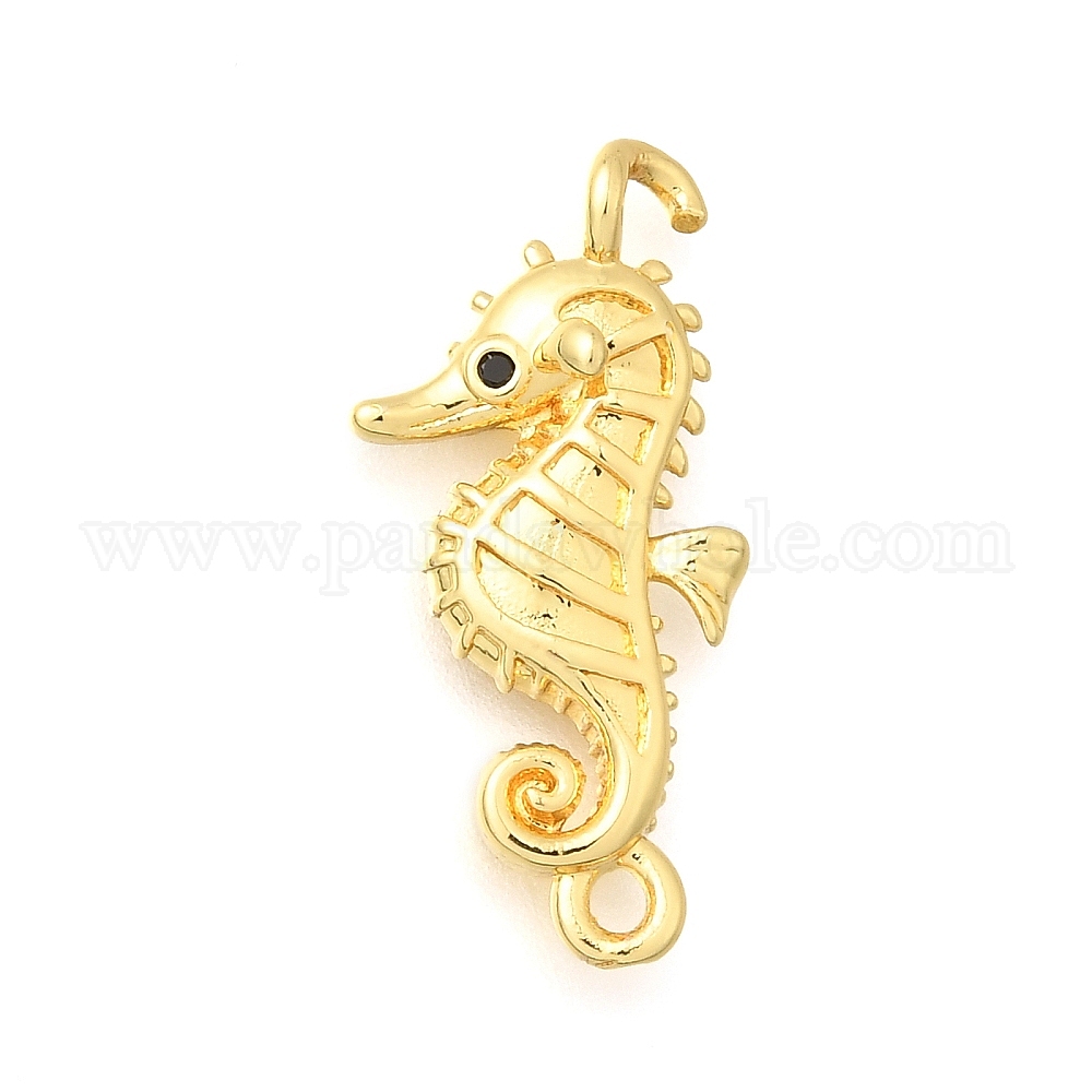 Подвески-коннекторы с морскими животными из латуни с микропаве из черного кубического циркония, ссылки на морских коньков