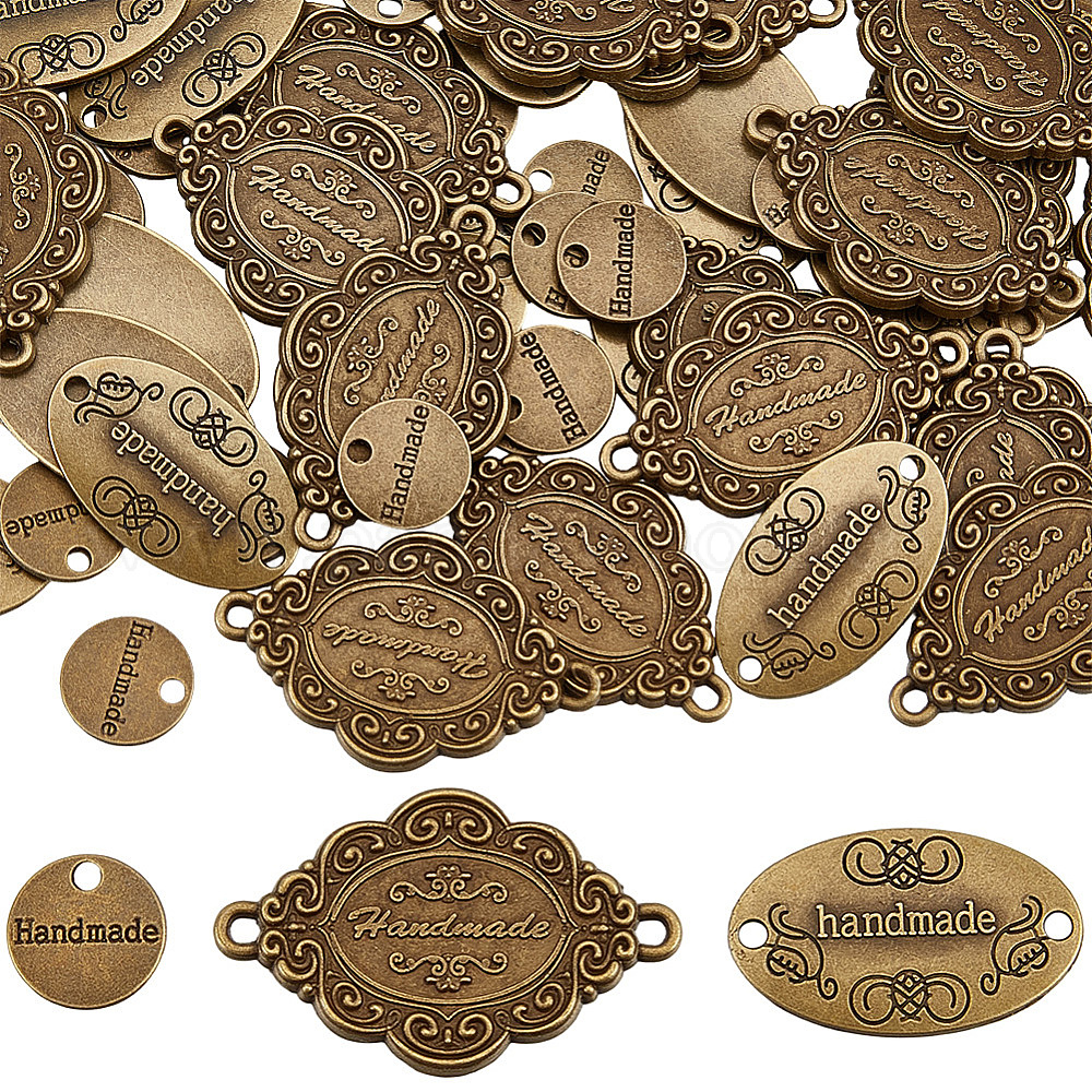 60шт 3 стили подвески из сплава в тибетском стиле, слова, сделанные вручную ссылки, плоские круглые и овальные