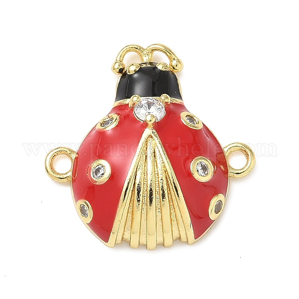 Звенья в виде божьей коровки из латуни с микропаве из прозрачного кубического циркония, с красной и черной эмалью, стойки покрытие, без свинца и без кадмия, долговечный