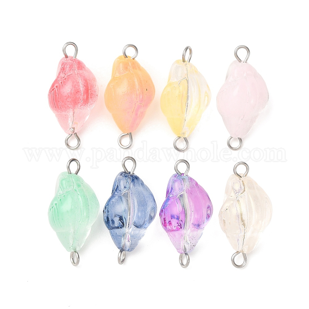 8 шт. 8 стили прозрачные окрашенные распылением стеклянные звенья соединительные подвески, форма раковины, с 304 двойными петлями из нержавеющей стали, цвет нержавеющей стали