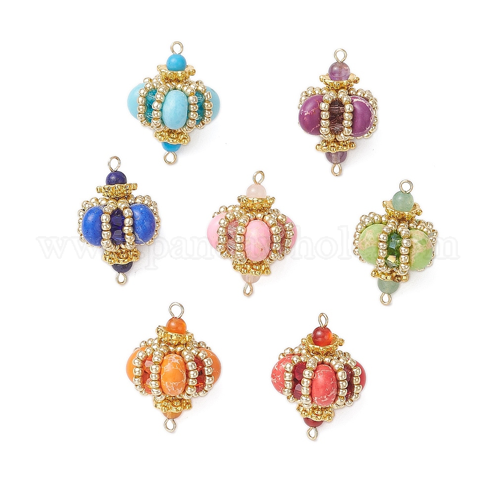 7 шт. 7 подвески-соединители в форме ромба из окрашенной синтетической императорской яшмы и стеклянных бусин ручной работы, с драгоценными камнями и биконическими стеклянными бусинами, золотые, смешанные окрашенные и неокрашенные
