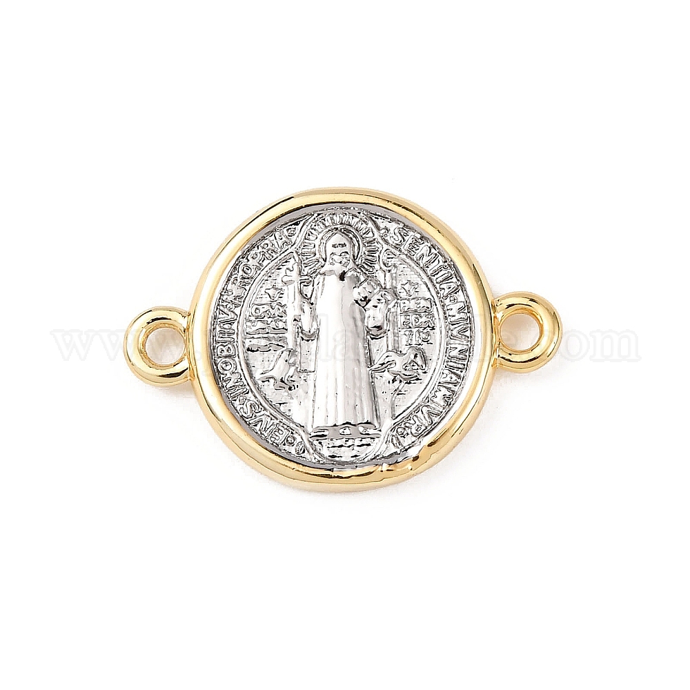 Латунные плоские круглые подвески-соединители с подвесками-звеньями Святого Бенедикта, стойки покрытие, долговечный, без свинца и без кадмия (037AAH)