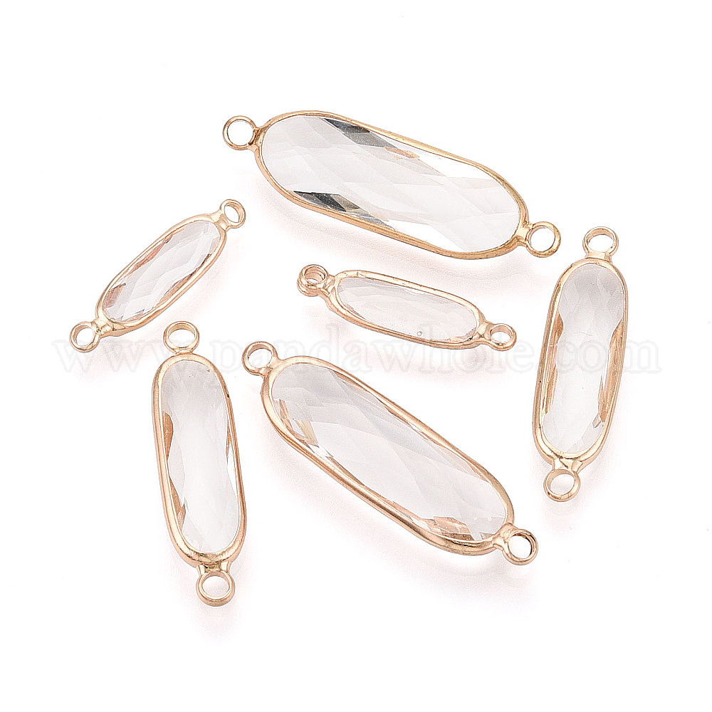 • Прозрачный Латунь со стеклянными звеньями/соединительными подвесками, овальные, граненые, золотые, прозрачные, 21~34.5x5.5~9.5x3.5~6 мм, отверстие : 1.8~2.2 мм