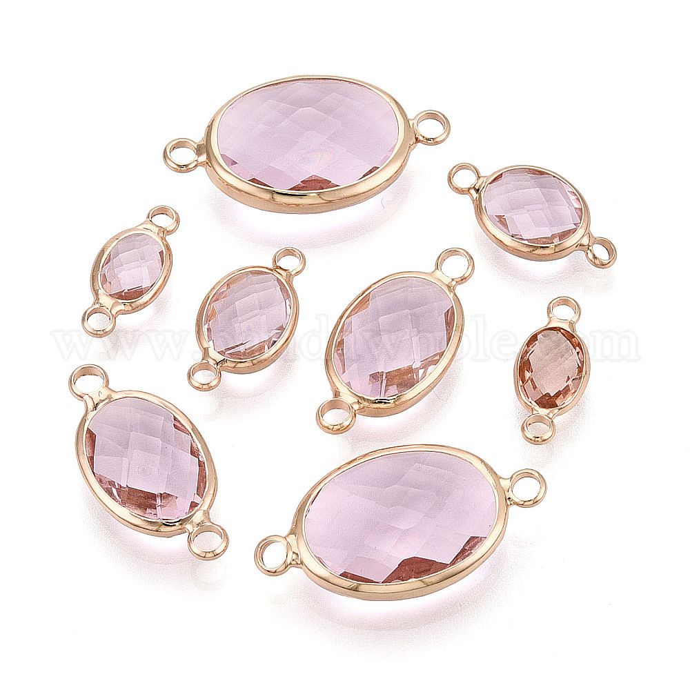 Латунь со стеклянными звеньями/соединительными подвесками, овальные, граненые, золотые