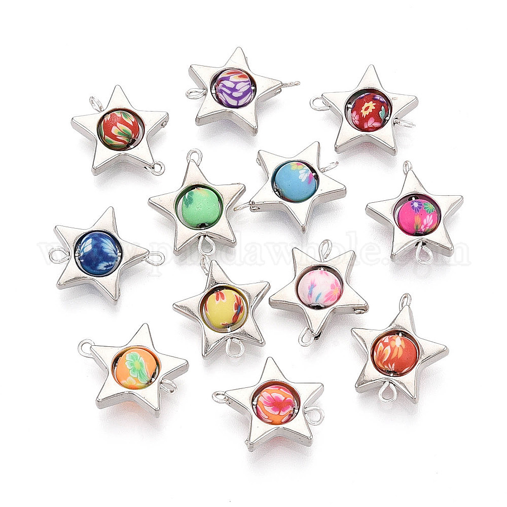Подвески-соединители из полимерной глины в форме звезды и рамки CCB, с латунными двойными петлями, платина