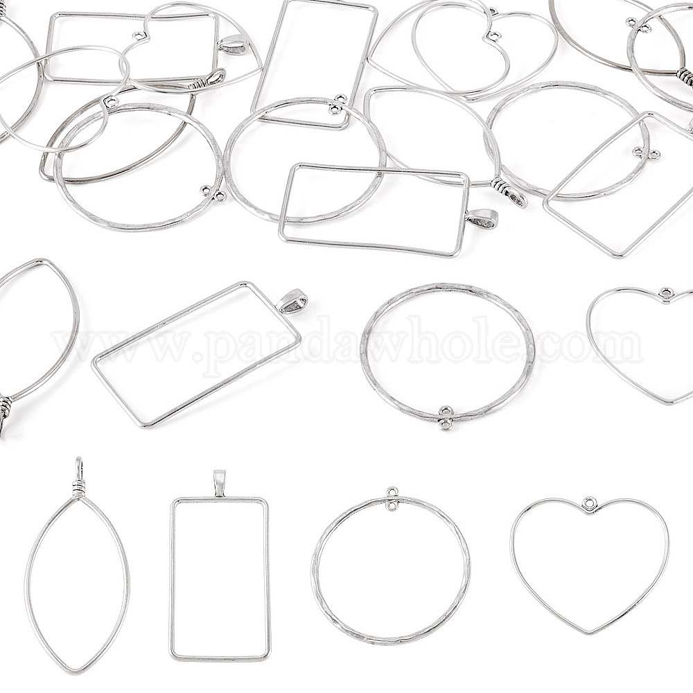 • Античное Серебро 24шт 4 стили подвески из сплава в тибетском стиле, кольцо в форме сердца, прямоугольник, конский глаз, разнообразные, античное серебро, 47~73.5x33~53x2 мм, отверстие : 1.8~3 мм, 6 шт / стиль