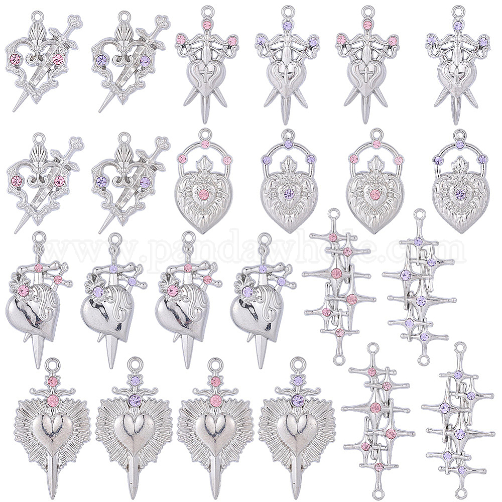 24шт 12 стили подвески со стразами из сплава, ссылки на крестиковые сердца, разнообразные