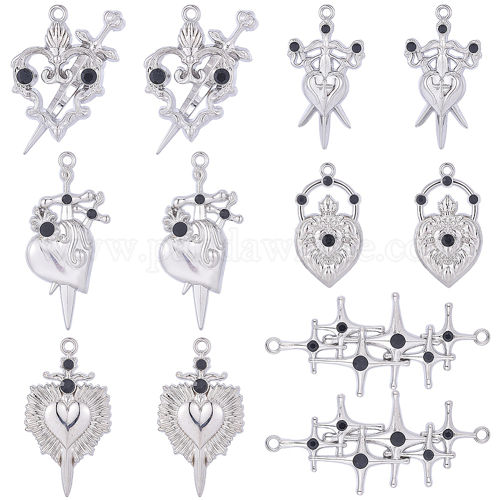 24шт 6 стили подвески со стразами из сплава, ссылки на крестиковые сердца, разнообразные
