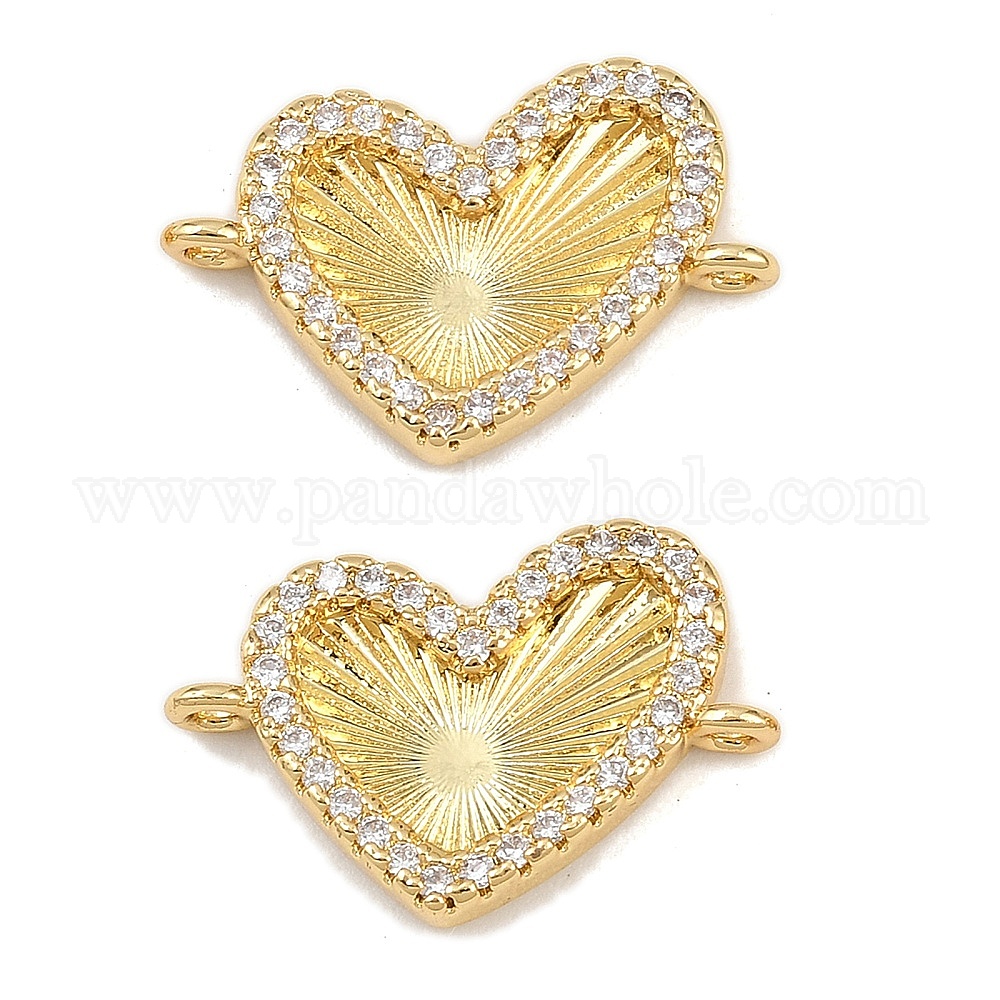 Шармы-соединители из латуни с паве из кубического циркония, сердечные ссылки, без свинца и без кадмия, долговечный, реальный 18 k позолоченный, стойки покрытие