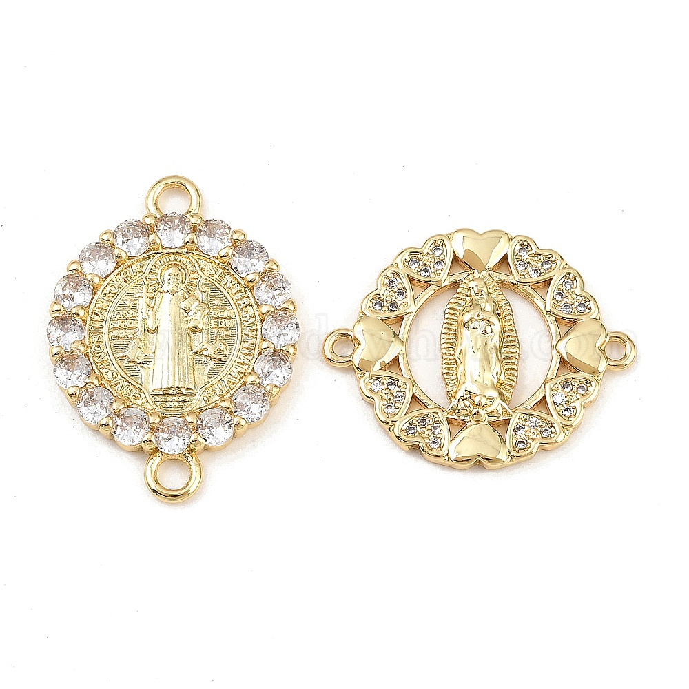 • Прозрачный Шармы-соединители из латуни с паве из кубического циркония, святые девственные ссылки, без свинца и без кадмия, долговечный, реальный 18 k позолоченный, стойки покрытие, прозрачные, 26.5x19.5x3 мм, отверстие : 2.5 мм