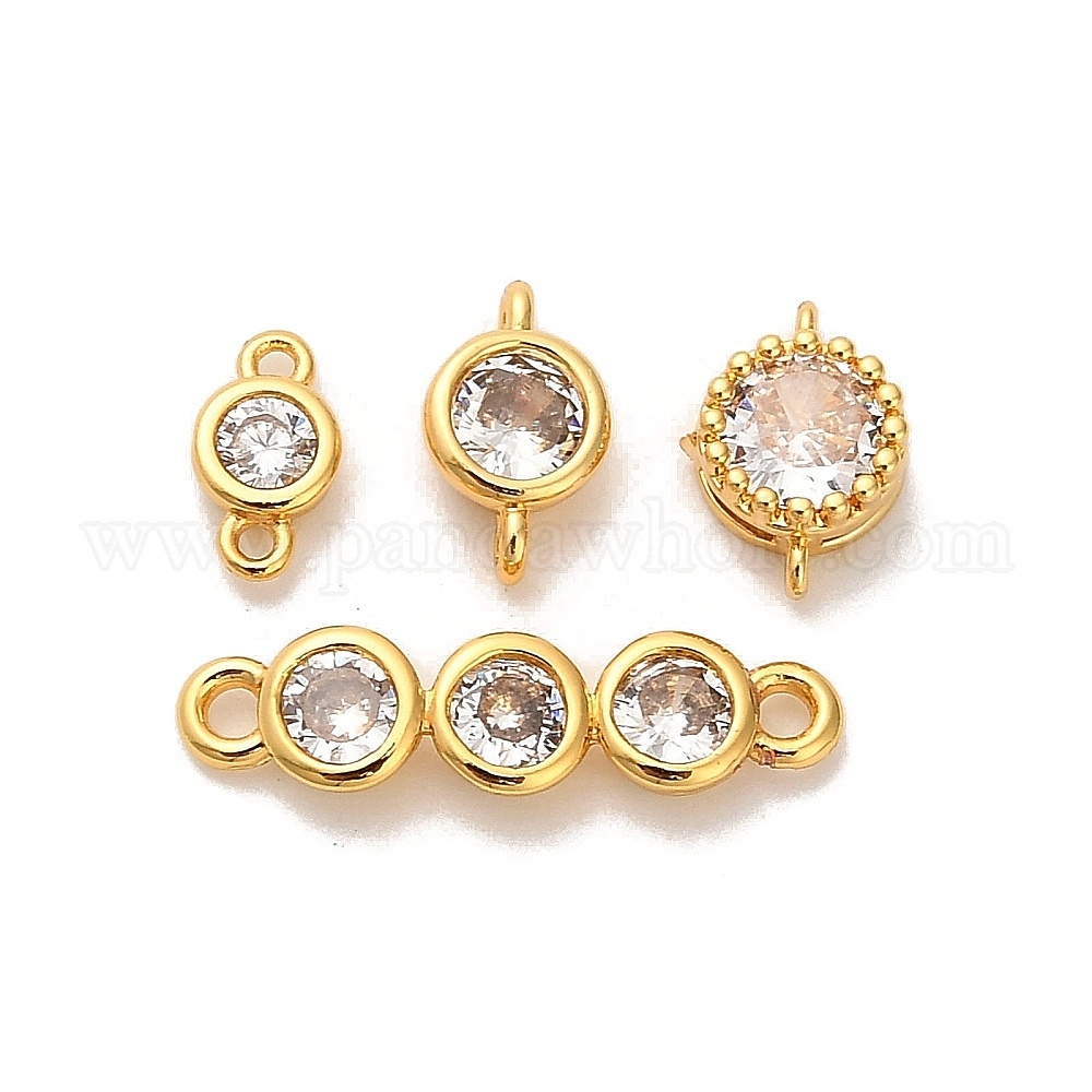 Латунные подвески с плоскими круглыми соединителями из прозрачных кубических цирконий, ионное покрытие (ip)