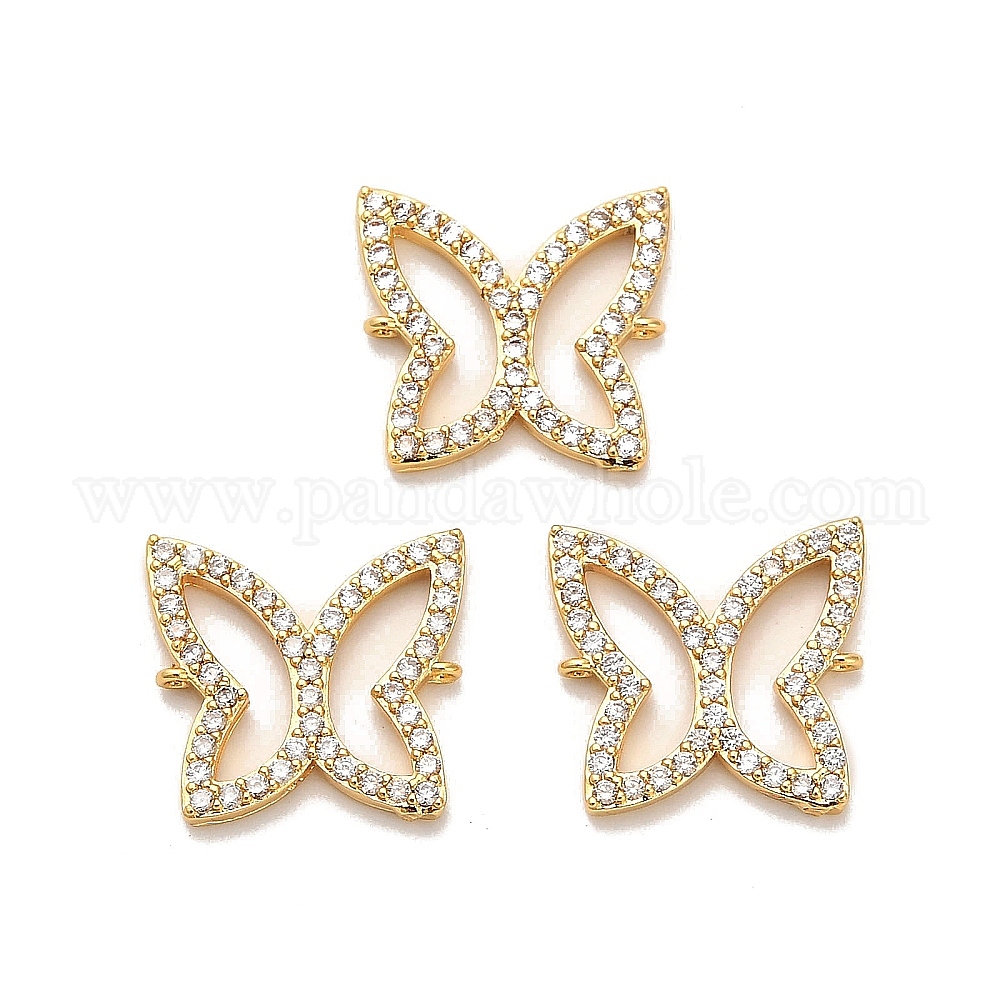 Подвески-бабочки из латуни с микропаве из прозрачного кубического циркония, ионное покрытие (ip)