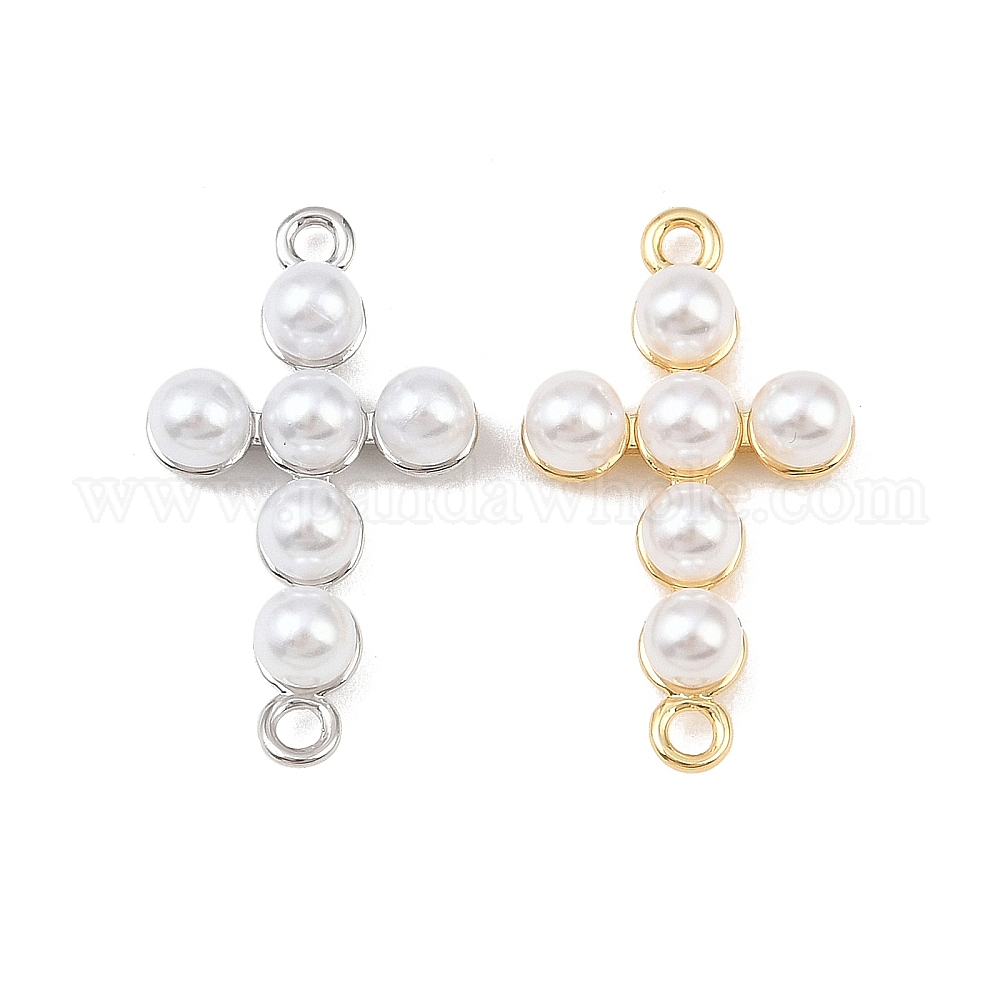 Подвески-соединители с крестообразным латунным креплением, с белым абс пластмассовым жемчугом бисером, без кадмия и без свинца, стойки покрытие, долговечный