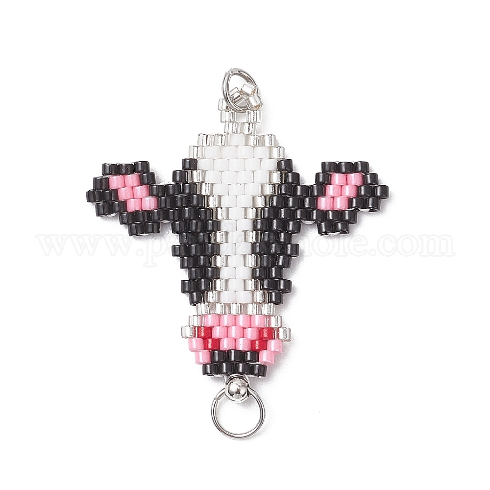 Подвески-соединители из стеклянных бусинок, Корова головой, с 304 кольцами из нержавеющей стали, цвет нержавеющей стали