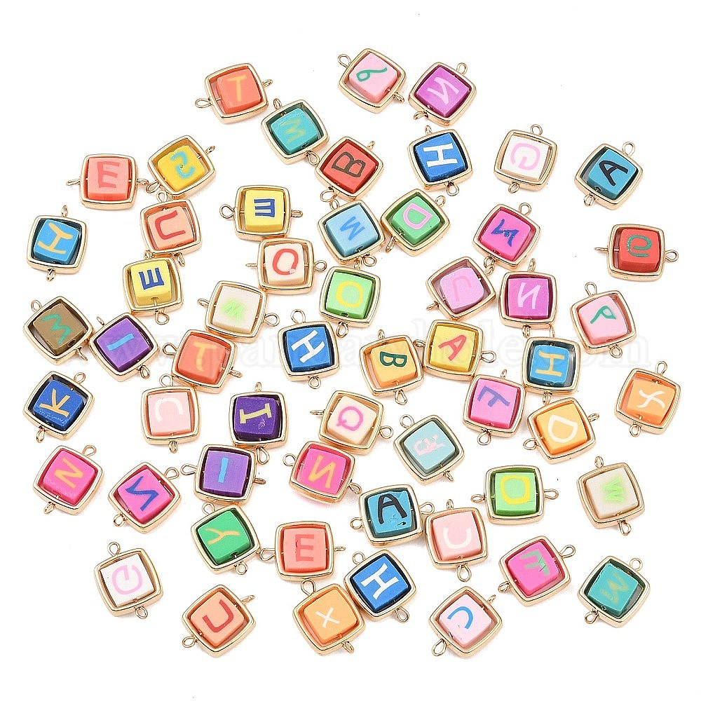 Пластиковая рамка ccb с бусинами из полимерной глины в виде букв, квадратные звенья, подвески-соединители, с латунными двойными петлями, золотые