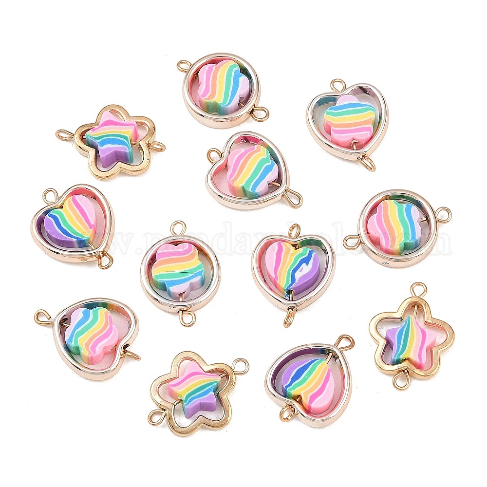 Пластиковая рамка ccb с радужными бусинами из полимерной глины, подвесками-соединителями, с латунными двойными петлями, красочный